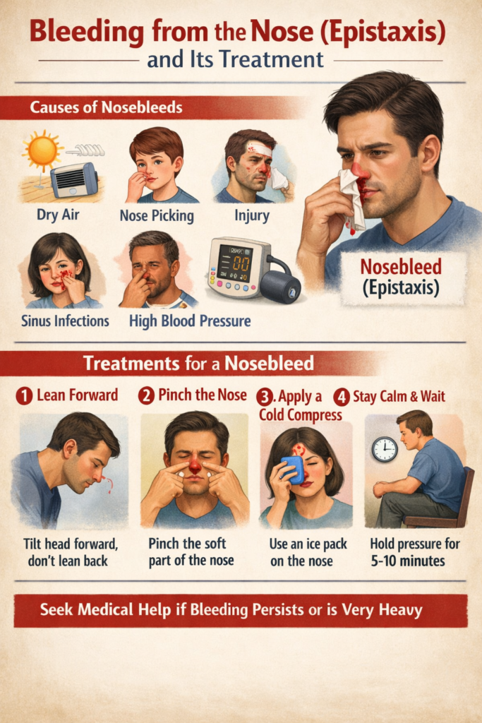 Bleeding from the nose, medically known as epistaxis, is a common condition that occurs when the blood vessels inside the nose rupture. The inside lining of the nose contains many small and delicate blood vessels that can easily break due to different causes. Nosebleeds can happen in both children and adults and are usually not serious, but sometimes they may require medical attention.